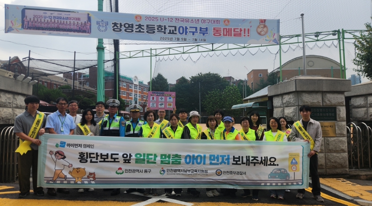 [메이저뉴스]인천 동구는 지난 25일 창영초등학교 주변 통학로에서 민관 합동으로 ‘아이 먼저’어린이 교통안전 캠페인을 진행했다고 밝혔다.