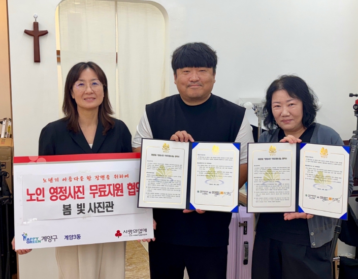 [메이저뉴스]인천시 계양구 계양3동은 9월 23일 계양3동 보장협의체(위원장 윤경순), 봄빛 사진관(대표 전상일)과 협약을 맺고, 취약계층 어르신들을 위한 영정사진 무료지원사업을 추진한다.