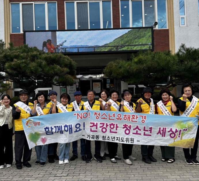[메이저뉴스]밀양시 가곡동은 청소년 지도위원(위원장 김명숙)과 함께 지역 내 학교 주변과 밀양역 일대에서 청소년 유해환경 개선 캠페인을 펼쳤다고 23일 밝혔다.