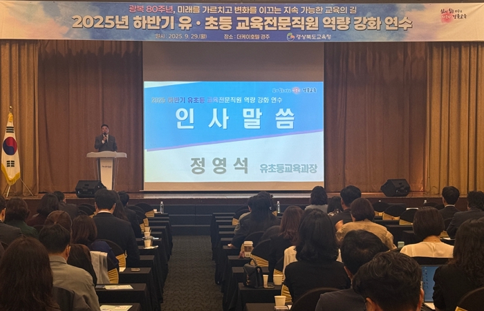 [메이저뉴스]경북교육청은 29일 경주시에 있는 더케이호텔경주에서 본청과 직속기관․교육지원청 소속 유․초등 교육전문직원 160여 명이 참석한 가운데 ‘2025 하반기 유․초등 교육전문직원 역량 강화 연수’를 개최했다고 밝혔다.