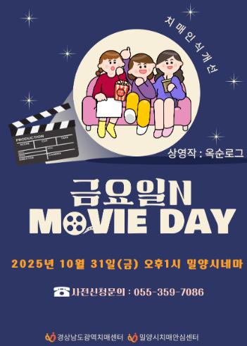[메이저뉴스]경남 밀양시는 오는 10월 31일 오후 1시, 경상남도광역치매센터가 주최하는 ‘금요일N무비데이’에 참여해 시민을 대상으로 영화 상영 행사를 개최한다고 22일 밝혔다.