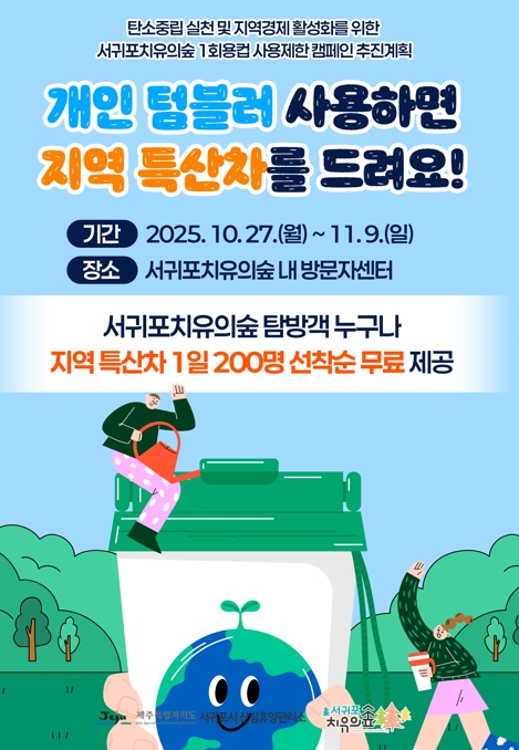 [메이저뉴스]서귀포시는 지역의 대표 웰니스 관광지인 서귀포치유의숲을 활용하여, 환경보호와 지역경제 활성화를 동시에 실천하는 ‘1회용컵 줄이기 캠페인’을 실시한다고 밝혔다.