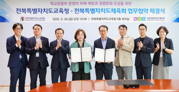 [메이저뉴스] 전북특별자치도교육청과 전북특별자치도체육회가 공정하고 투명한 학교 운동부 환경 조성을 위해 손을 맞잡았다.