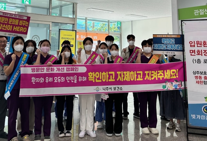 [메이저뉴스]전라남도 나주시보건소는 추석 명절을 앞두고 병원급 의료기관 3개소와 함께 ‘병문안 문화개선 캠페인’을 전개하고 병문안 관리 실태 점검을 했다고 밝혔다.