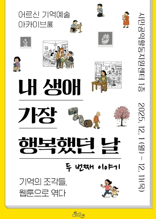 [메이저뉴스]순천시가 오는 12월 1일부터 12월 11일까지 순천시 시민공익활동지원센터 1층 시민공익라운지에서 ‘어르신 기억예술 아카이브 전시회, 내 생에 가장 행복했던 날 두 번째 이야기’를 진행한다.