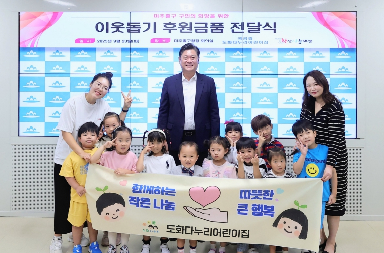 [메이저뉴스]인천 미추홀구는 23일 구청장실에서 국공립도화다누리어린이집(원장 이은정)으로부터 지역 내 저소득층을 위한 후원금 60만 원을 전달받았다.
