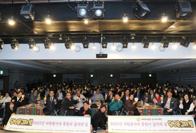 [메이저뉴스] 사회복지법인 문수복지재단(대표이사 지원)은 지난 12월 2일, 유엔평화기념관 컨벤션홀에서 ‘2025년도 자원봉사자·후원자 감사의 날’ 행사를 개최했다고 밝혔다.