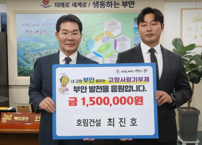 | ▲ 호림건설 최진호 이사, 부안군 고향사랑기부금 150만원 기탁 |