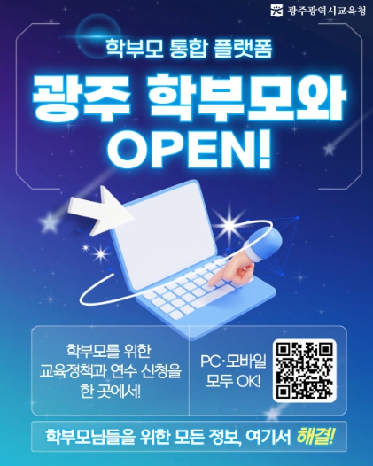 ‘광주 학부모와’는 학부모들이 정책·연수·행사 정보를 한 곳에서 쉽게 확인할 수 있도록 지원하기 위해 마련됐다.