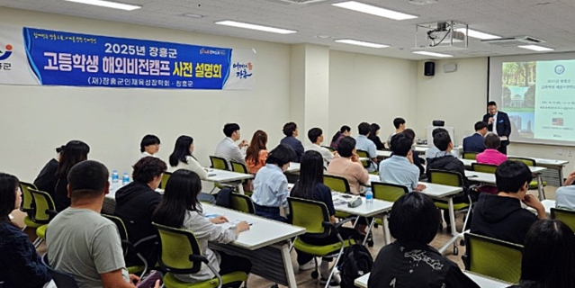 [메이저뉴스]장흥군은 15일 (재)장흥군인재육성장학회 주관으로 장흥고등학교에서 ‘2025년 장흥군 고등학생 해외비전캠프 사전설명회’를 개최했다.