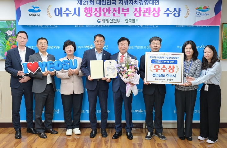 [메이저뉴스]여수시가 행정안전부와 한국일보가 공동으로 주최한 ‘제21회 대한민국 지방자치경영대전’에서 ‘지방물가 안정 분야’ 우수기관으로 선정돼 행정안전부장관 표창을 수상했다.