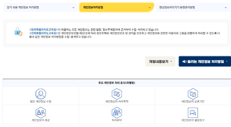 [메이저뉴스] 전북특별자치도교육청은 개인정보보호법과 개인정보 처리방침을 보다 쉽고 명확하게 이해할 수 있도록 ‘들리는 개인정보 처리방침’을 구축·운영한다고 16일 밝혔다.