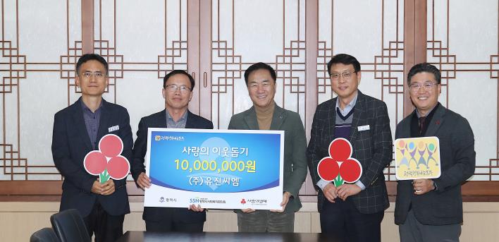 [메이저뉴스](주)유진씨엠은 지난 29일 평택시청 대외협력실에서 평택행복나눔본부에 이웃돕기 성금 1,000만원을 전달했다.