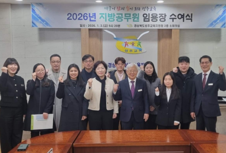[메이저뉴스]성주교육지원청은 2026년 1월 2일 청사 내 소회의실에서 지방공무원 전입자 및 신규 임용자를 대상으로 임용장 수여식을 개최했다.