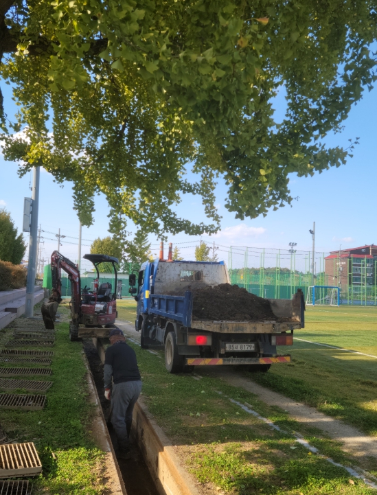 | ▲ 관내학교 운동장 배수로 정비 지원 |