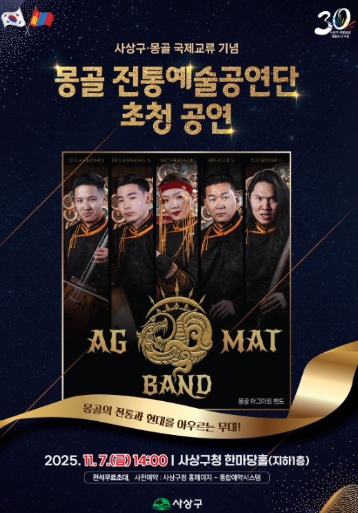 [메이저뉴스]부산 사상구는 몽골 울란바토르시 송긴하이르한구와의 우호교류 협약 체결을 기념하여 오는 11월 7일 오후 2시, 사상구청 한마당홀에서 특별한 국제 문화교류 공연을 개최한다.