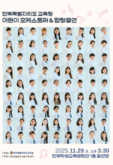 [메이저뉴스]전북특별자치도교육청은 오는 29일 전주학생교육문화회관 1층 공연장에서 ‘2025 전북특별자치도교육청 어린이 오케스트라 & 합창공연’을 개최한다.