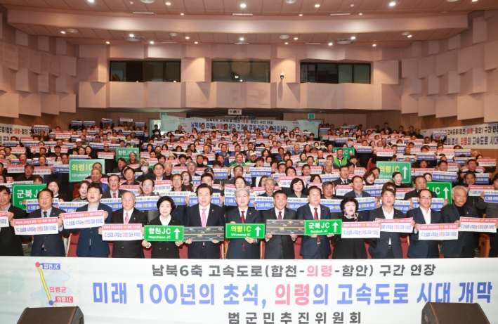 [메이저뉴스]의령군은 24일 의령군민문화회관에서 ‘남북6축 고속도로 합천–의령–함안 구간 연장 범군민 추진위원회 발대식 및 결의대회’를 열고 고속도로 연장 사업 추진을 공식 선언했다.