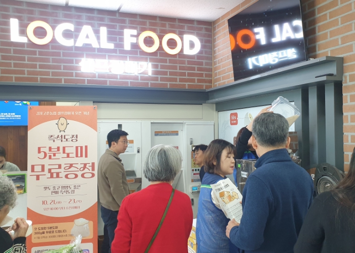 [메이저뉴스]김포시농업기술센터는 10월 21일부터 23일까지 김포고촌농협 로컬푸드 장곡점에서 실시한 '로컬푸드 무인 셀프 정미기 시연 및 증정행사'를 성공적으로 마무리했다고 밝혔다.
