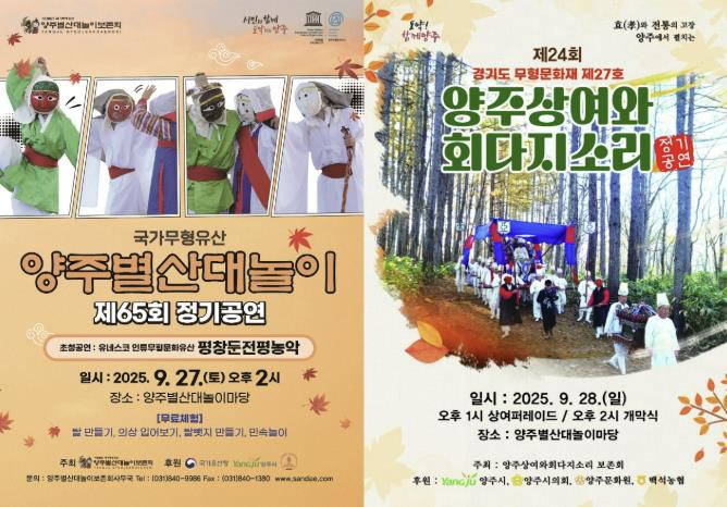 [메이저뉴스]양주시가 오는 9월 27일과 28일 이틀간 양주별산대놀이마당에서 지역 대표 무형유산 정기공연을 연이어 개최한다.