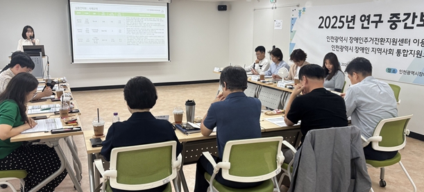 | ▲ 인천시사회서비스원 최혜정 정책연구실 부연구위원이 지난 18일 인천시장애인주거전환지원센터 대회의실에서 ‘2025년 인천시장애인주거전환지원센터 이용자 종단조사 연구’ 중간보고를 하고 있다. |