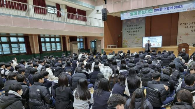 | ▲ "함께 걷는다면" 경기도연천교육지원청, 전곡중학교 전교생 대상 학생 강연 |