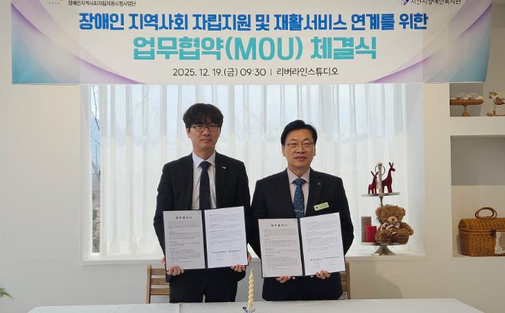 [메이저뉴스]서산시장애인지역사회자립지원시범사업단과 서산시장애인복지관은 2025년 12월 19일, 서산시에 거주하는 장애인의 안정적인 지역사회 정착과 복지 향상을 위해 업무협약(MOU)을 체결했다.