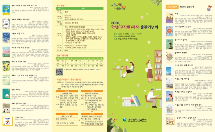 [메이저뉴스] 대구시교육청은 2월 3일 오후 2시, 시교육청 행복관에서 학생ㆍ교직원 저자, 학부모, 학교ㆍ출판 관계자 등 410여 명이 참석한 가운데 ‘2026. 학생・교직원 저자 출판기념회’를 개최한다.