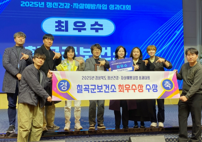 [메이저뉴스]칠곡군은 지난 8일 구미 호텔금오산에서 열린 ‘2025년 경상북도 정신건강·자살예방사업 성과대회’에서 “최우수상”을 수상했다.