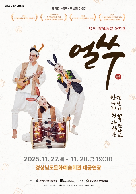 [메이저뉴스]경남문화예술회관은 27~28일 양일간 오후 7시 30분 대공연장에서 국립아시아문화전당재단 제작한 뮤지컬 쿵짝 두번째 이야기 – 얼쑤 공연을 개최한다고 밝혔다.