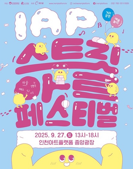 [메이저뉴스](재)인천문화재단-인천아트플랫폼은 9월 27일 13:00~18:00 인천아트플랫폼 중앙광장에서 거리공연과 예술놀이 프로그램으로 구성된 거리예술 축제 'IAP 스트릿 아트 페스티벌'을 개최한다.