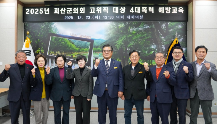 [메이저뉴스] 괴산군의회는 23일 의원들과 5급이상 관리자를 대상으로 4대폭력 예방 통합교육을 실시했다.