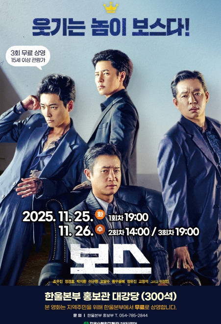 이세용 본부장은 “지역주민들이 즐겁고 유쾌한 시간을 보내길 바라는 마음으로 영화 '보스'를 선정했고, 가족과 함께 환절기 추위를 날릴 수 있는 따뜻한 시간이 됐으면 한다”라고 전했다.