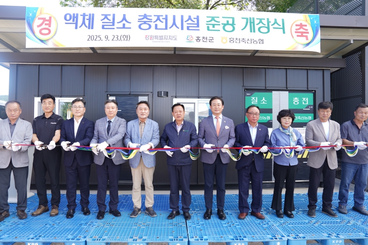 [메이저뉴스]홍천군은 한우 개량과 농가 소득 증대를 위해 홍천축산농협 가축시장(북방면 하화계길 11번길 48)에서 액체질소 충전소 준공 개장식을 개최했다.