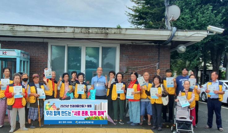 ▲반려동물로 인한 야간 소음 자제 ▲층간소음 예방 ▲아파트 내 금연 생활화 ▲장애인 주차구역 준수 등 공동체 생활에서 서로를 배려하는 인권 존중 실천에 대해 이야기하며 주민 스스로 이웃을 배려하는 마을을 만들기 위한 생활 속 인권 실천 활동으로 소소하지만 울림 있는 변화를 일으켰다.