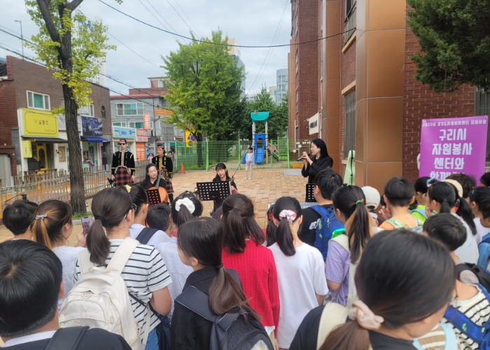 [메이저뉴스]사단법인 구리시자원봉사센터는 9월 18일 교문초등학교에서 '등굣길 꿈꾸는 음악대' 세 번째 공연을 개최했다.