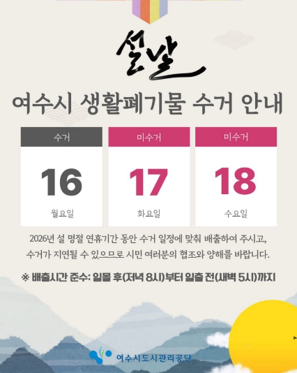 | ▲ 여수시도시관리공단, 2026년 설 명절 대비 특별 환경정비 추진 및 휴무 안내 |