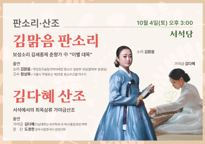 [메이저뉴스]광주문화재단 전통문화관은 오는 10월 4일 오후 3시, 제21회차 토요상설공연을 선보인다.