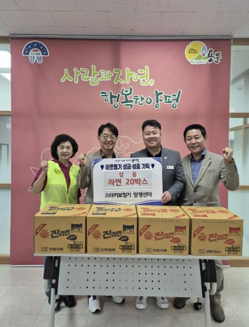 | ▲ 스타키보청기 양평센터, 용문면에 라면 20박스 기탁 |
