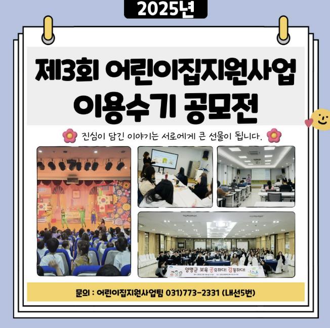 | ▲ 양평군육아종합지원센터, ‘제3회 이용수기 공모전’ 개최 |