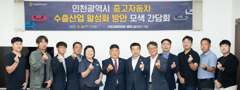 이날 토론회를 주최한 박창호 의원은 “집행부·유관기관·산업계와의 협의를 통해 중고차 수출단지 활성화를 뒷받침하고, 필요한 제도적 근거 마련에 힘쓰겠다”며 “산업 통계체계 정비와 민관 협의체 구성, 현장 행정 개선을 통해 중고차 수출산업이 인천의 미래 성장 동력이 되도록 하겠다”고 말했다.