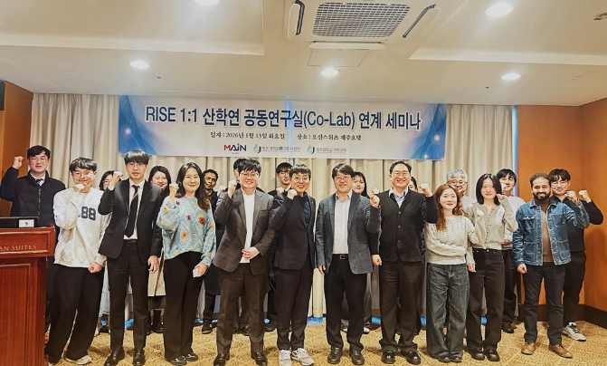 [메이저뉴스]지역과 대학의 동반 성장을 목표로 제주 RISE사업에 참여하고 있는 제주대학교 RISE사업단(이하 ‘사업단’) 미래전략3팀의 ‘1:1 산학연 공동연구실 Co-Lab 구축’ 프로그램의 ‘제주대학교 약학대학 약제학 연구실(생체이용률조절연구실)’은 ㈜메인과 지난 1월 13일, 약학 및 바이오·헬스케어 분야 연구 협력 강화를 위한 업무협약(MOU)를 체결하고 사업단의 1:1 산학연 공동연구실 Co-Lab 연계 공동 세미나를 개최했다고 밝혔다.