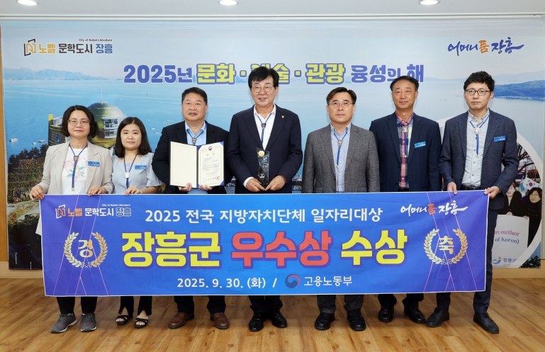 [메이저뉴스]장흥군이 지난 30일 충북 청주 오스코에서 열린 고용노동부 주관 ‘2025 전국지방자치단체 일자리대상’에서 공시제 분야 우수상을 수상했다.