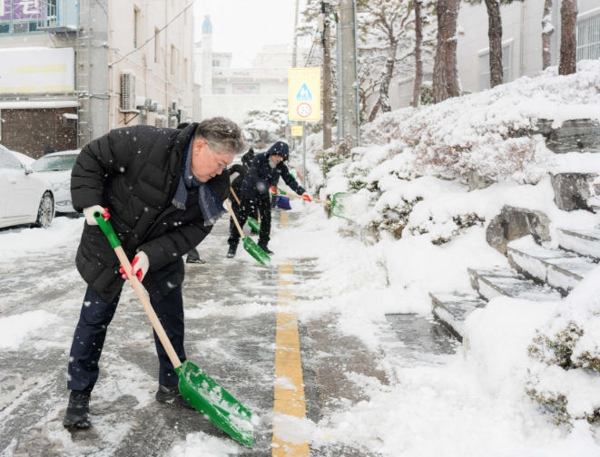 | ▲ 영광군 직원들과 함께“눈 치우기” 나서 |