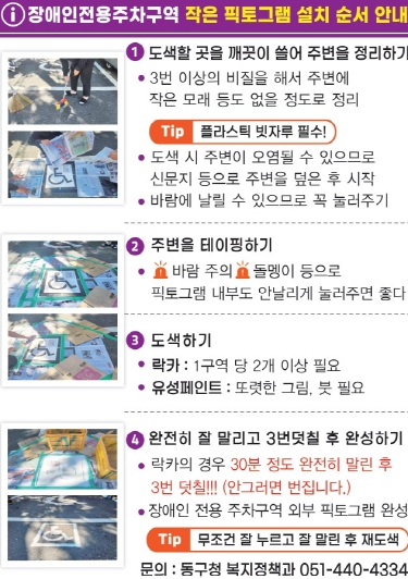 이번 사업은 장애인전용주차구역의 픽토그램이 훼손되거나 지워져 식별이 어려운 구역을 주민 스스로 정비할 수 있도록 지원하는 주민참여형 프로젝트다.
