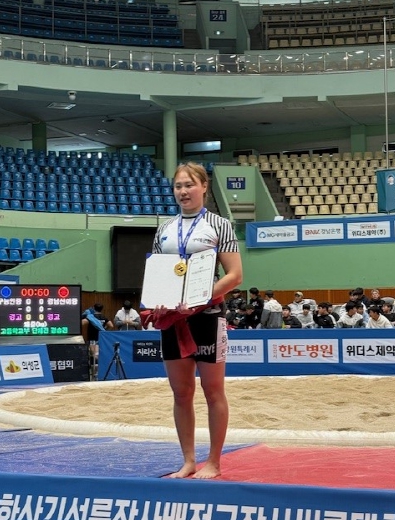 한편, 매화급에서는 선채림 선수가 준우승을, 무궁화급에서는 이세미 선수가 3위를 차지하며 구례군청 반달곰씨름단의 저력을 과시했다.