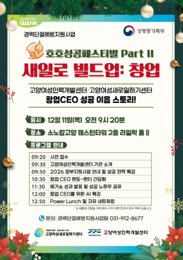[메이저뉴스]고양여성새로일하기센터는 오는 11일 오전 9시 20분, 소노캄 고양에서 ‘호호 성공페스티벌 Part II – 새일로 빌드업 창업’을 개최한다고 밝혔다.