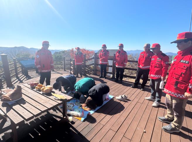 [메이저뉴스]고성군 대가면은 11월 10일, 대가면 시루봉 정상 산불초소에서 산불감시원과 면 직원 등 10여 명이 참여한 가운데 ‘산불방지 염원 기원제’를 실시했다.
