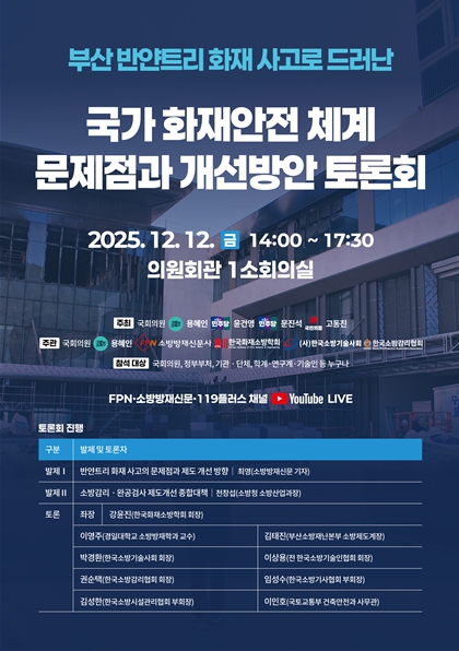 | ▲ 국가 화재안전체계 문제점과 개선방안 토론회 포스터 |