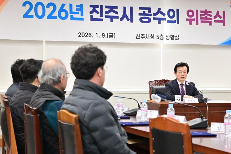 [메이저뉴스]진주시는 9일 시청 5층 상황실에서 가축질병 예찰 및 원활한 가축방역사업을 추진하기 위해 수의사 8명에 대한 ‘2026년 공수의 위촉식’을 가졌다.